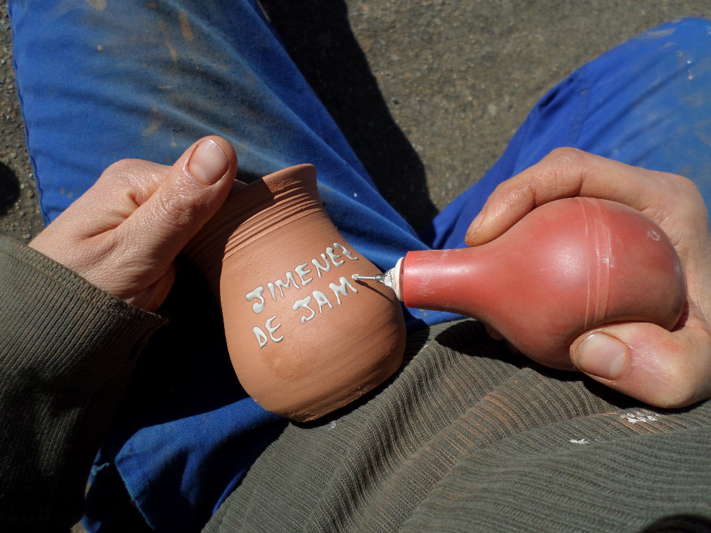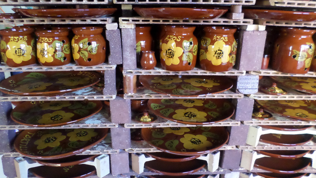 El proceso de elaboración de las piezas de alfarería (cacharros) es muy laborioso, una vez hechas las piezas en el torno las secamos al sol, posteriormente las decoramos con pinceles y peras, después le aplicamos el baño (esmalte) y por último se cuecen en altos hornos a unos 1000 grados.